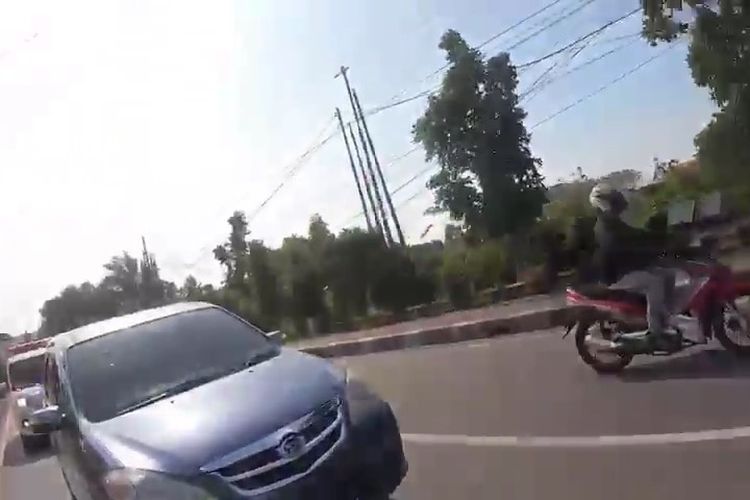 Tampak dalam video, dua pengendara motor tadi berusaha semampunya membelah kemacetan di jalanan Cikarang.