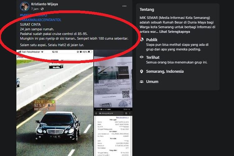 Beredar di media sosial sebuah postingan dari seorang pengemudi yang kena tilang elektronik di jalan tol.