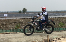 Presiden naik Kawasaki KLX 150, sama seperti saat dirinya menyambangi Papua dan meninjau proses pembangunan Trans Papua.