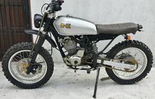 Kawasaki KLX150 berkamuflase dengan aliran modifikasi beraliran Scrambler retro dari D-I Motorsport, Malaysia