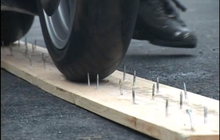 Sebuah ban yang mampu tahan terhadap tusukan paku dan benda tajam berkat sebuah cairan ari Rhinotire