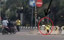 Razia biasanya selalu dilakukan di jalan yang terbuka dan ada tanda kalau sedang ada razia dari pihak kepolisian. Tapi di video ini berbeda.