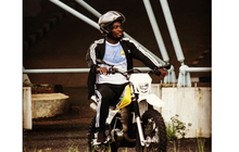 Punggawa Persib Bandung dan eks pemain Chelsea, Michael Essien terlihat sedang menaiki motor trail, yakni Suzuki TS125.