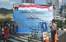 Banner yang dipasang oleh Satpol PP DKI Jakarta berisikan larangan pelaksanaan kegiatan partai saat CFD.