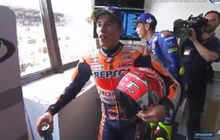 meski naik podium bareng, Marc Marquez dan Valentino Rossi masih canggung dan saling salting sendiri, masih jaga jarak buat saling bicara