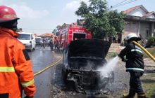 Sedan timor terbakar setelah mencoba menghidupkan AC, dugaannya karena korsleting listrik dan butuh 2 mobil pemadam
