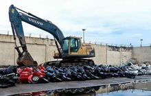Presiden Filipina, Rodrigo Duterte kembali memusnahkan ratusan motor hingga mobil mewah hasil selundupan, ada 122 vespa New PX baru dan mobil