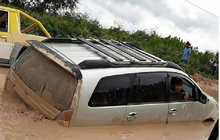 Toyota Kijang Innova Terperangkap Kubangan Lumpur di Jalan Lintas Kabupaten Kalimantan