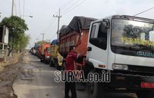 Puluhan truk sampah menumpuk di akses TPA Benowo karena adanya demo oleh ibu-ibu warga kampung Tambakdono. Demo ini bermula dari