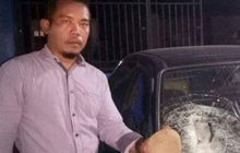 Toyota Soluna milik wartawan media online jadi sasaran pelemparan batu yang dilakukan dua orang berboncengan motor di Medan