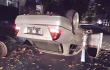 Aneh, Bisa-bisanya Sedan Mercedes-Benz Terbalik Begini Di Pondok Indah