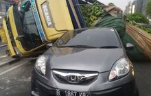 Sopir Gak Konsentrasi, Truk Muatan Pisang Seberat 6,5 Ton Timpa Bokong Honda Brio