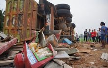 Tragis, Truk Pasir Nyelonong, Hajar Warung Dan Jepit Pemiliknya Seketika