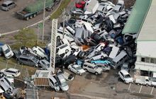 Mengerikan, Puluhan Mobil Bertumpuk Dan Berserakan Akibat Bencana Topan Jebi di Jepang