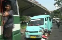 Sebiah mikrolet menabrak petugas dinas perhubungan Jakarta Selatan karena kelabakan saat akan dirazia