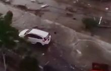Video detik-detik sebuah mobil yang diduga Daihatsu Terios atau Toyota Rush tersapu gelombang Tsunami selepas gempa di Donggala, Sulawesi Tengah