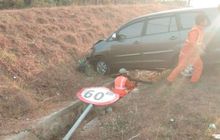 Duarr, Ban Pecah, Kijang Innova Menancap Ke Tanah Di Tol