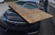Nyaris, Tripleks Terbang Dari Truk 'Memenggal' Kaca Depan Honda Civic