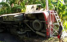 Bus Isi 28 Orang Tiba-Tiba Goyang, Berakhir Miring Di Parit