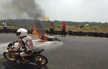 Tragis, Suzuki Satria FU150 milik kontingen perwakilan Sukoharjo terbakar di gelaran road race Porprov Jateng