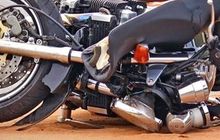 Pemotor Honda Karisma terlindas truk saat terjatuh di jalan berlubang karena kondisi jalan berlubang, nahas di belakang ada truk trailer