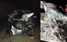 Sebuah Daihatsu Xenia adu muka atau adu banteng dengan truk tronton Hino di Tegal, Jawa Tengah, dua orang tewas ditempat