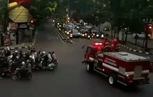 Mau Padamkan Api, Truk Damkar Terguling Duluan Di Tikungan