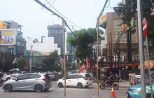 Kabel listrik yang melintang di perempatan Jalan KH Wahid Hasyim, Jakarta Pusat, terlihat sangat semrawut, biker harus lebih waspada