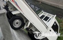 Baru juga diservis, Suzuki Carry pikap baru distarter pemiliknya sudah langsung loncat masuk ke dalam sungai di Surabaya, Jawa Timur