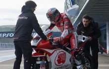 Pembalap Indonesia Dimas Ekky Pratama tes motor Moto2 mesin Triumph di Moto2 Spanyol 2018. Kemarin ia mulai mencoba besutannya