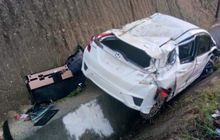Honda Jazz Terbang Mendarat di Drainase, Kalau Gak Ada Airbag Sopir Kelar