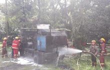 Gara-Gara Selang Kompresor, Truk Pengolah Aspal Hangus Terbakar