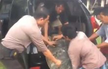 Mobil Toyota Avanza jadi mobil evakuasi penyu raksasa terdampar akibat tsunami Selat Sunda di wilayah Banten, (23/12/2018)