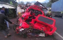 Toyota Agya Susah Dikenali, Dihantam Lalu Dihimpit Truk Pasir