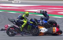 Valentino Rossi jadi salah satu rider yang kena seruduk Jorge Lorenzo di tikungan 10 pada lap kedua MotoGP Catalunya Minggu malam (17/6).