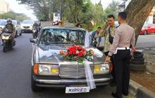 Wakasatlantas Polrestabes Bandung Kompol Bayu Catur Prabowo mendatangi sebuah mobil pengantar pengantin