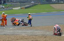 Marc Marquez memang beberap akali crash di sesi FP, namun kali ini cukup parah hingga motornya terbelah.
