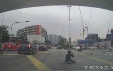 Ini adalah kisah seorang pria yang pura-pura menabrakkan motornya ke mobil yang melaju di jalan raya.