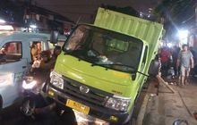 Lubang bekas galian kabel PLN bikin sebuah mobil boks yang mengangkut air kemasan terperosok. Akibatnya, jalan Palmerah Barat tersendat