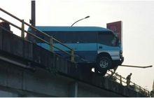 Ngeri! Kalau Goyang Sedikit Isuzu Elf Bisa Nyemplung dari Jembatan