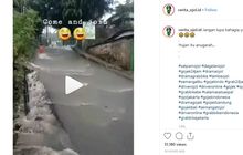 Anak-anak sedang bermain dijalan turunan yang kondisinya banjir. Mereka terlihat begitu bahagia namun tetap saja hal itu bisa membahayakan mereka