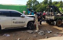 Mobil Dinas Kesehatan menabrak pengendara motor yang berboncengan dan rumah. korban meninggal satu orang dan satu lagi kritis