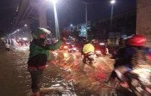 Salut, Driver Ojol Rela Tidak Narik, Hujan-hujanan Atur Lalu Lintas Agar Gak Ada yang Mogok Terjang Banjir