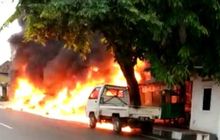 Bensin Tumpah Kena Alat Pemanas Tambal Ban, Pertamini Hangus, Api Sempat Jilat Mobil Dan Gedung