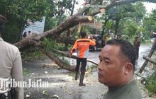 Pohon Flamboyan Timpa Honda Brio, Jalanan Macet 1 Km, Unit Reaksi Cepat Penanggulangan Bencana Turun Tangan