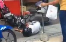 Video Viral di media sosial, seorang pengendara jatuh dari motornya di depan sebuah rumah makan pada Minggu (15/3/2020).