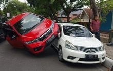 Dongkol Disalip Zig-zag, Ban Honda Jazz Berakhir Sandaran di Kaca Nissan Livina