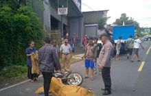 Brak..! Hantam Truk Tronton Parkir, Tubuh Pengendara Motor Langsung Ditutupi Kain