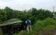 Truk Ekspedisi Terguling di Jurang Tikungan Tajam, Sopir Luka Memar Seluruh Badan