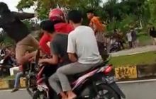 Seorang Pemotor Dikeroyok 3 Orang Pemuda, Korban Terjatuh Bersama Motor, Videonya Viral